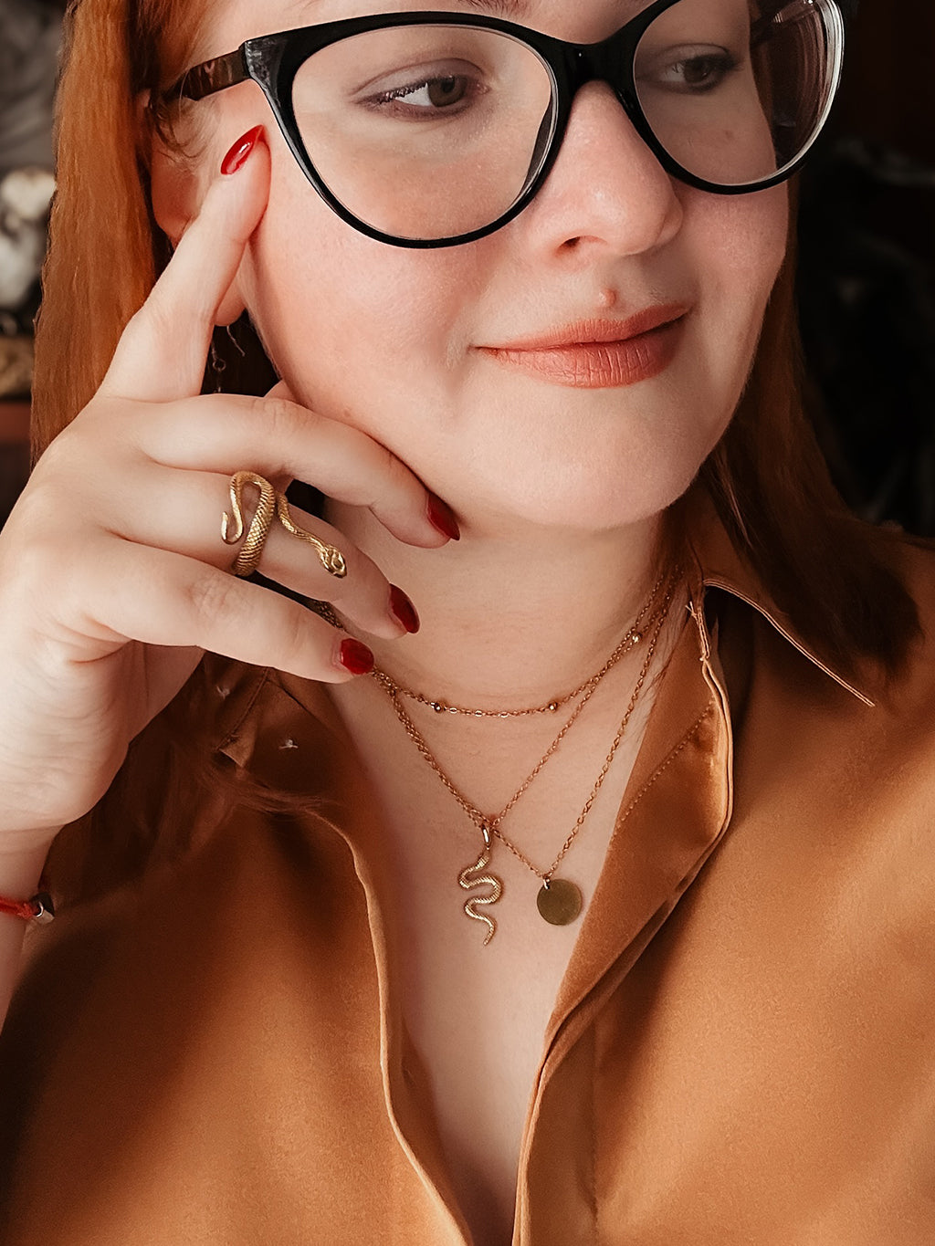 Diese Halskette aus hochwertigen Materialien bietet einen eleganten und zeitlosen Look, der sowohl für den Alltag als auch für formelle Anlässe geeignet ist. Ihr einzigartiges, von Schlangen inspiriertes Design macht sie zu einem herausragenden Stück in jeder Schmuckkollektion.
